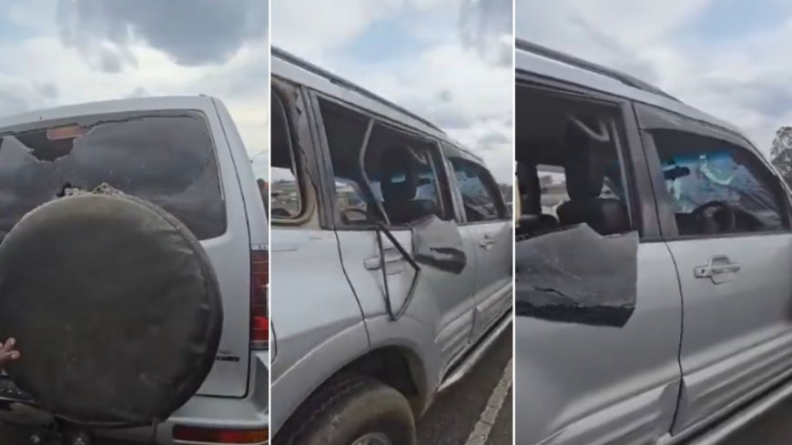 A vehicle in Rigathi Gachagua's convoy which was stoned after goons attacked his motorcade along Mombasa Road. /PROPESA TV