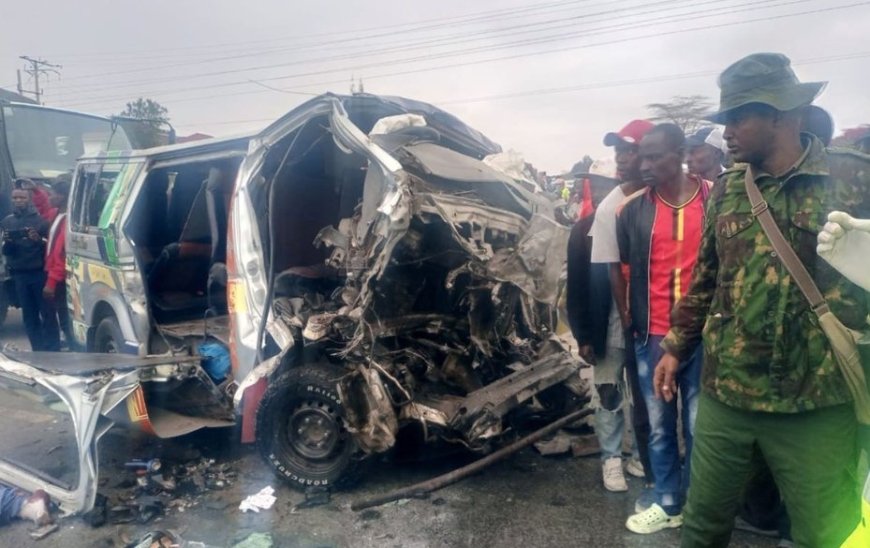 The 8 a.m. crash involved a head-on collision between a lorry headed for Isinya and a 14-seater matatu travelling towards Kitengela.