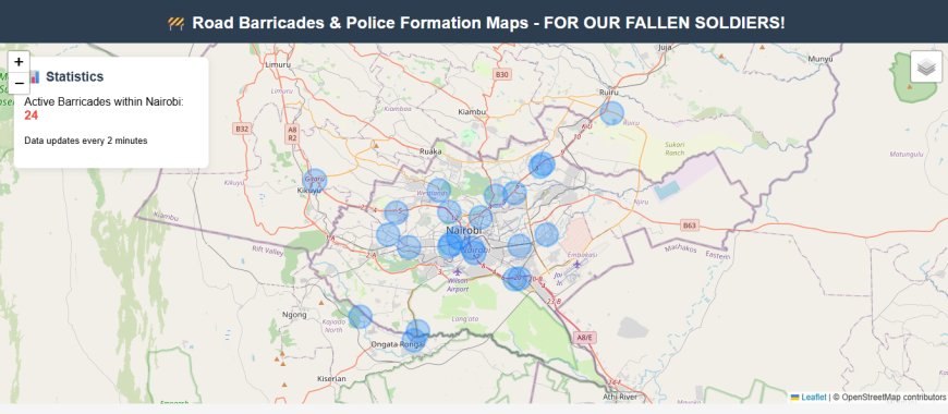 By the time of publishing this story, Viral Tea counted up to 24 roadblocks mounted across Nairobi and its environs, referenced by a website, nairobi-cbd-barricades.vercel.app created by X user Kelvin to monitor the roadblocks erected across the Metropolitan.