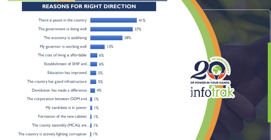 Per a new Infotrak Voice of the People Poll released on Thursday, September 25, most Kenyans believe the country is moving in the right direction owing to confidence in government performance.